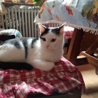 ADOZIONE DEL CUORE PER GATTINA SHAKI BIANCA E NERA DI 6 MESI.