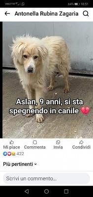 ASLAN, 9 ANNI, SI STA SPEGNENDO IN CANILE: ADOZIONE DEL CUORE. Calabria