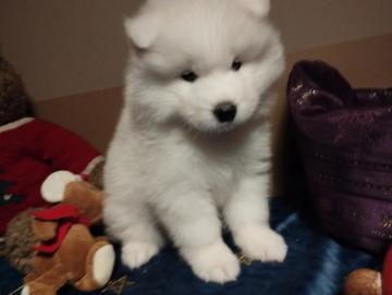 cuccioli di samoiedo, nati in casa de 3 mesi e da genitori sani; i cuccioli saranno consegnati a 90 giorni, avranno un corretto ciclo vaccinale, (primo e secondo vaccino); sono sverminati (unico ciclo con contralte plus); saranno svezzati con cura, ed abituati già alle crocchette, infatti nel ultima settimana si eseguiranno a turni pasti alternati di latte della mamma e ciotoline di crocchette; possibilità di consegna in tutta Italia (valutando i costi e le possibilità) per altre foto ed informazione di ogni genere contattami