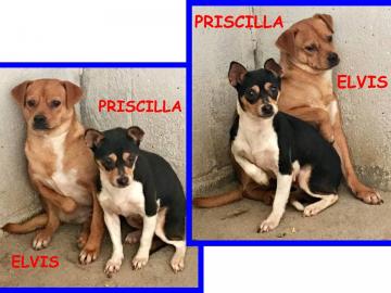 ELVIS e PRISCILLA sono due tenerissimi cagnolini entrati insieme in canile circa 3 mesi fa. Sono entrambi ancora due cuccioloni di circa 1 anno e mezzo ed entrambi sono molto spaventati. Priscilla, la femminuccia è una splendida mix pinscherina di piccola taglia, sui 30 cm di altezza, ed è la meno spaventata dei due. Quando ti avvicini lei comincia a tremare, ma pian piano si fa toccare, mente Elvis, il maschietto, è leggermente più grande, una taglia mediopiccola e cerca di evitare il contatto con le persone abbaiando e mettendosi perfino su due zampe. Elvis e Priscilla fanno davvero tanta tenerezza...vedere questi due piccoletti che ti guardano con occhi sgomenti stringe il cuore. Ci auguriamo che trovino presto una casa, magari insieme, ma va bene anche separatamente, l'importante è far tornare a splendere i loro occhi...quello che manca a questi due tesori è solo tanto amore!!!