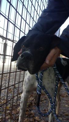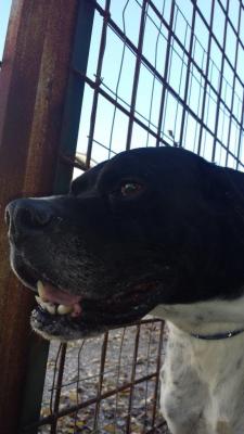 Beniamino ha circa 8 anni, un pointer puro bellissimo, bianco e nero, con la bocca un po’ storta, forse per un calcio che gli hanno dato, forse il suo vecchio proprietario cacciatore.