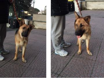 E’ stato trovato in strada con una corda al collo mentre correva spaesato su una strada provinciale a scorrimento veloce. Non ha microchip, nessuno in zona lo conosce, quindi si pensa ad un abbandono.