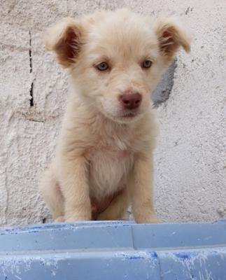 SISSY, 3 mesi, futura taglia media, trovata che vagava su una strada a scorrimento veloce, era disorientata, sfinita e piena di parassiti, un angelo l’ha recuperata e portata in salvo.