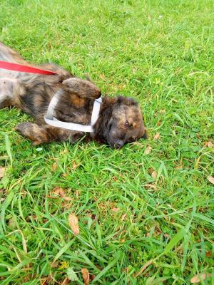 Diana è una cagnolona dolcissima. Ha un anno e mezzo. Il suo pelo è molto particolare, maculato o tigrato. Pesa 17/18 kg. Ha urgente bisogno di una casa, in canile non vuole più stare!!! Va d’accordo con tutti e cerca coccole in continuazione!!! Si cede in tutto il centro nord vaccinata, microchippata e sterilizzata, con libretto veterinario.