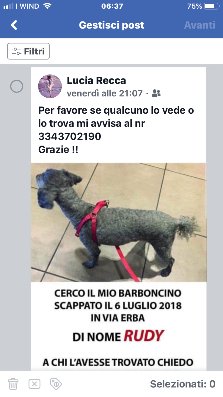 Dal 6/7/18 smarrito il mio barboncino di 11 anni microcippato Carattere socievole Aiutatemi a ritrovarlo Cell 3343702190 Lucia