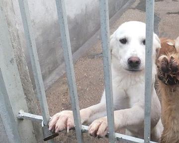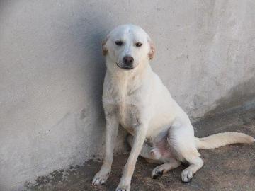 TOBY, BELLISSIMO, TIPO LABRADOR BIANCO, 14 KG, E’ ENTRATO IN CANILE QUANDO AVEVA UN ANNO.