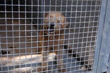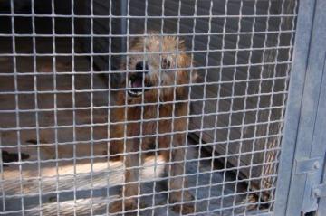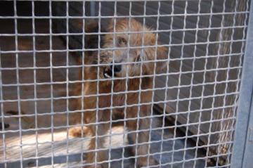 E' piccolo, pesa forse 10 Kg e da 14 anni vive chiuso dentro un box di cemento che misura circa 3 metri per 2, senza mai uscire.