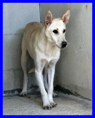 Questa bella cagnolona dalle zanpe lunghe è JANIS, cucciolona di poco più di 1 anno, taglia media, sui 50 cm. ha le zampe pronate, cioè ha quello che negli umani si chiamerebbe "piede piatto", ma ciò non sembra darle alcun problema. La nostra Janis ha un bel vocione squillante e ce lo ha fatto sentire quando siamo entrate nel suo box. Inizialmente faceva un pò la ritrosa ma poi si è lasciata tentare dai biscottini e alla fine è venuta a mangiarli dalla nostra mano. Janis è entrata solo qualche mese fa in canile e convive con un maschietto con il quale va d'accordo. Cerchiamo una bella adozione per Janis, pensiamo che meriti di uscire da quella gabbia e torni a respirae la lbertà e magari conoscere l'amore!!