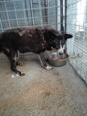 E’ sfinita questa cagnolina, avrà ancora poco da vivere.