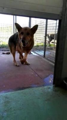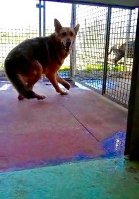Sempre chiuso nel box, senza mai uscire da quando era cucciolo, zoppica e striscia il suo moncone sul cemento ruvido, che lo taglia e spesso lo fa sanguinare.