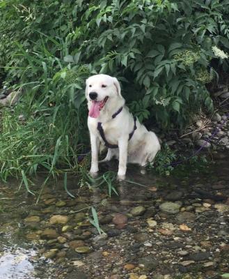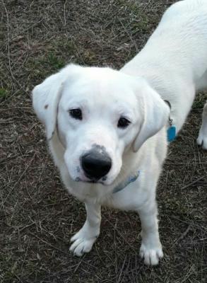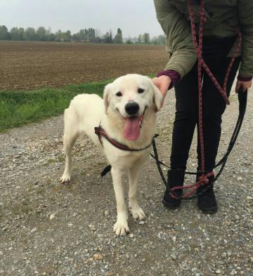 Bianco è un Mix labrador che non ha niente da invidiare a un labrador vero e che ha il suo marchio DOP in un piccolo pallino nero sull'orecchio...che lo rende davvero unico!