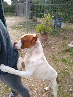 ABBANDONATO PER STRADA ORA DEVE VIVERE CHIUSO DENTRO UN BOX. LUI CERCA LA SUA CASA. Ecco King, un bellissimo esemplare di Pitbull..ha circa tre anni ed è buonissimo con le persone. E' stato trovato che vagava per strada ed era stato aggredito perché aveva ferite profonde.. è stato sterilizzato, vaccinato ed è negativo alla leishmaniosi. Adesso deve vivere dentro un box, ma lui sogna i prati verdi, le coccole, una persona da amare. I pit sono di una dolcezza unica, si legano molto alle persone, hanno bisogno di camminare, correre, di avere qualcuno vicino con cui condividere la vita, di cui essere i fedeli amici e compagni. King è molto bello, è bianco e arancio, sterilizzato, un pit splendido e molto buono. King sembra ancora un cucciolone dolce che aspetta solo qualcuno che lo porti via. La vita di questo cane magnifico e dolce non può passare tutta chiusa dentro un box. Diamo al bellissimo King una casa e una persona da amare. King si trova in provincia di Bari ma potrà arrivare al nord per ottima richiesta. Rosalba 3383630146