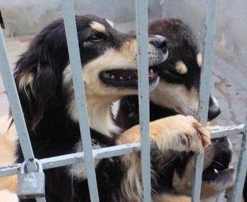 In questo canile non ci sono cucce, né materassini, i cani dormono su una pedana di legno che è sempre umida, facendosi caldo a vicenda.