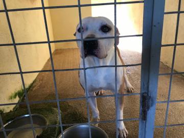 FARAONE, PITT BELLISSIMO, TRASFERITO DAL CANILE DI PALERMO, ADESSO VIVE IN UN CANILE DOVE NON SI RECANO I VOLONTARI, DENTRO UN BOX SENZA AREA ESTERNA. SALVIAMOLO. Canile della provincia di Caserta - Faraone (da Palermo) cerca casa! Faraone è un bellissimo pitt puro, bianco a macchie arancio, gli occhi buoni e teneri... è molto giovane..avrà forse 3 anni , forse anche meno. Era rinchiuso nel canile di Palermo da quando era poco più di un cucciolo e un anno fa è stato trasferito insieme ad altri cani in questo canile della provincia di Caserta. Qui vive ancora dentro un box, un box piccolo, senza neppure un'area esterna per sgambare. E ha perso anche i volontari che lo seguivano...in questo canile non vanno volontari. Prima a Palermo ogni tanto veniva portato a passeggio, ma qui non c'è nessuno per farlo uscire ...Faraone da più di un anno non ha più visto l'erba, cammina solo nel piccolo spazio di cemento del box... e sarà così per tutta la sua vita se noi non lo salviamo. Faraone è un cane molto bello, buono con le persone , si avvicina alle grate , ha baciato le mani della volontaria quando è andata a scattargli queste foto...le ha dato anche dei bacini sulla bocca, tanto e' tenero....ma la volontaria non è più tornata e Faraone da un anno non vede più nessuno. Faraone ha un carattere tranquillo, sicuramente è buono anche con le femmine e sa già andare al guinzaglio. Se c'è qualcuno che conosce questa razza e la ama, chiami per lui. Non lasciamolo qui per altri anni , non si può rinchiudere un pitt in un box piccolo di cemento e non farlo uscire mai.... Portiamolo ancora a passeggiare su un prato.