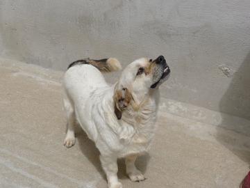 E' un cagnolino buffo, bassotto e un po’ cicciottello. Ha il mantello quasi bianco, un musetto tenerissimo e occhi tristi e liquidi, come di un cucciolo.