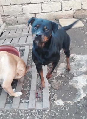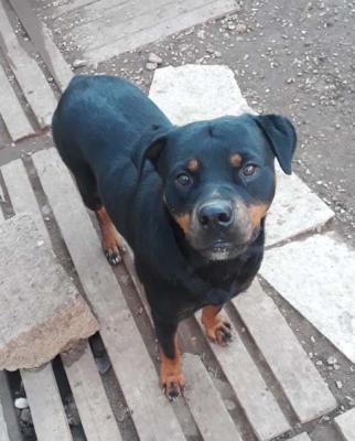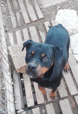 Rottweiler di 2 anni, dolcezza infinita, Amy, trovata a fine giugno in mezzo al nulla, un mucchietto di ossa completamente disidratata, in insufficienza renale acuta, viva per miracolo.