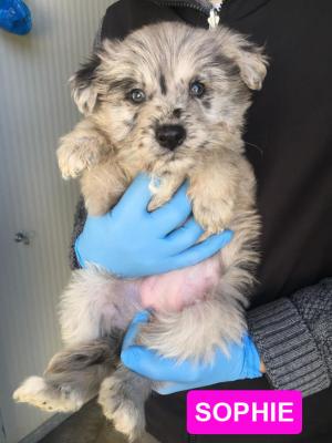 CUCCIOLI DI 57 GIORNI, INCROCIO PASTORE BERGAMASCO, NATI IN CANILE, DA MAMMA ARRIVATA GRAVIDA, CERCANO CASA