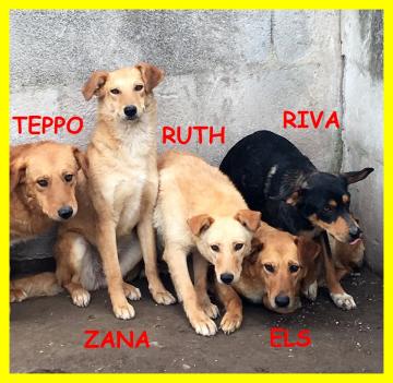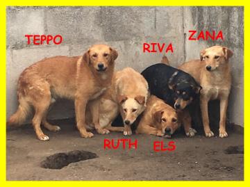 Li abbiamo chiamati "Il Mucchio Selvaggio". Sono 4 femmine, RUTH, ZANA, RIVA, ELS ed un maschio castrato, TEPPO, tutti di taglia media. Tre di loro sono sorelle, Ruth, Zana e Riva, oggi cucciolone di 1 anno e mezzo, nate in canile un mese dopo l'entrata della loro mamma Els, 3-4 anni. Dopo qualche mese è arrivato anche Teppo, maschio castrato di circa 3 anni, a fare loro compagnia. E così sono diventati una bella famigliola di cani disperati, terrorizzati e inavvicinabili. Le cucciole non hanno mai visto niente di diverso dal box nel quale sono nate, e sono state contagiate dalla diffidenza della madre e del "padre adottivo". Stanno sempre tutti insieme, ammucchiati uno sulle altre, si proteggono, si guardano le spalle, hanno solo loro stessi, non hanno mai avuto altro. Oggi proviamo a dare loro qualcosa di più...una speranza...quella di un'ADOZIONE D'AMORE che li porti lontano da quel box e dalle loro paure, non sarà facile, forse non ci riusciremo, sicuramente non per tutti loro. Ma noi ci proviamo lo stesso, anche salvarne uno sarebbe un successo...salvarli tutti un miracolo!!!
