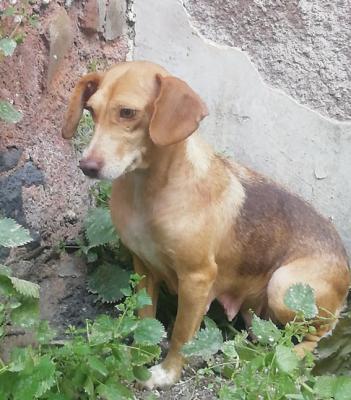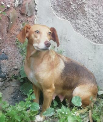 Ginevra è una meticcia forse incrociata con un BASSOTTO di piccola taglia circa 8 kg, di 18 mesi.