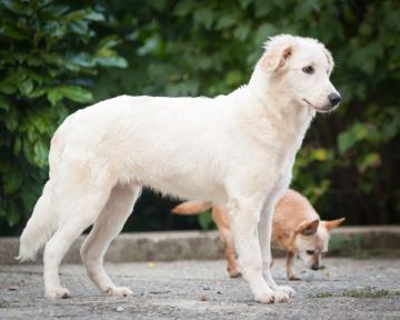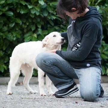 Mi presento: sono Daglas cucciolo di circa 5/6 mesi. Nella sfortuna, sono stato fortunato, perché dei bambini mi hanno trovato con i miei fratellini, in un campetto di calcio, ci hanno segnalato e portati al canile.