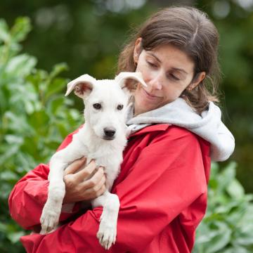 JAGO è davvero piccino, arrivato ieri a Bergamo, maschietto simil labrador, bello come il sole, bianco come la neve.