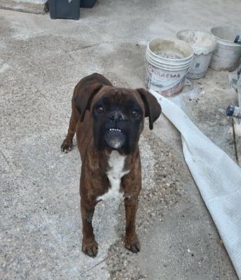 EMMA, l’ennesima rinuncia di proprietà, questa volta non si tratta di un meticcio, ma di un cane di razza BOXER, acquisita in un fior allevamento, ma nonostante ciò, NON LE RISPARMIA l’abbandono.