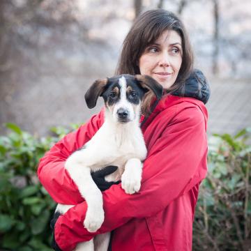 Trovato con la sorellina (che è stata adottata) in un sacchetto con le zampine e il musetto legati con una corda, in una gelida sera di pioggia battente.