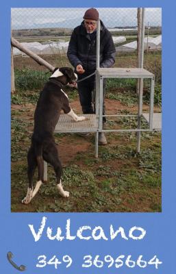 Vulcano mix molosso Taglia media grande Ha fatto un percorso con un educatore cinofilo. Carattere: equilibrato, obbediente, segue i comandi, allegro, simpatico e vivace, molto divertente. E' socievole con le persone, apprezza il contatto umano, è un ottimo compagno Compatibilità: compatibile con cani femmine, con i maschi va testato nello specifico. Fisico: Sano, vaccinato, chippato, sterilizzato. E' stato recluso per il suo primo periodo di vita, essendo esuberante e mix molosso, non lo facevano uscire dal box della struttura che lo ospitava. In realtà era molto stressato e il non uscire lo rendeva ancora più vulcanico, da qui il suo nome. Arrivato all'Arca si è subito calmato, potendo uscire regolarmente e avendo più spazio a sua disposizione il suo stress è diminuito ed è stato più semplice instaurare un rapporto con lui. Il lavoropoi svolto con l'educatore Riccardo Totino, gli ha permesso di imparare ad essere obbediente e a gestire le sue energie.