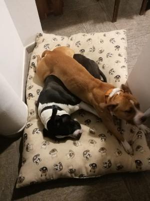 coppia di magnifici amstaff di 2 anni, il maschio quello bianco e nero, sono inseparabili e bravissimi, con le persone sono eccezionali, gatti no altri cani da valutare caso per caso. Con tutti i documenti regolari cercano una casa per sempre, sono stati tolti da una situazione insostenibile e ora pensare di doverli fare entrare in qualche canile ci fa soffrire enormemente, sono bravi e giovani si meritano una vita piena d'amore. Adozione in coppia sarebbe l'ideale ma data l'urgenza per evitare il canile si prendono in considerazione anche adozioni singole.
