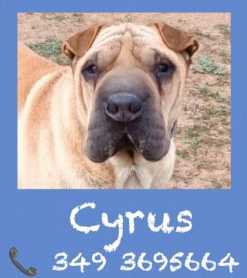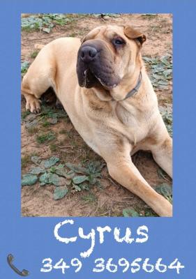 Cyrus si trova presso l'Arca di Rita a Nettuno (Roma), dove è una pena vederlo senza riferimenti e ambiente adatto alle sue caratteristiche delicate. Si affida chippato, vaccinato e sterilizzato dopo la compilazione del modulo conoscitivo e iter di preaffido al centro e al nord Italia.