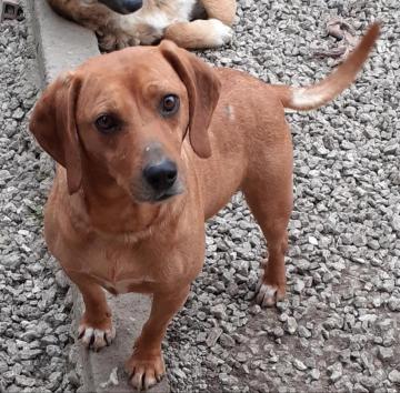 Nino è uno splendido cagnolino di taglia media contenuta (15 chili). Pelo raso, zampe corte mix bassotto . NINO ha 4 anni già castrato e si trova in provincia di Palermo.. Un cane dall’aspetto simpatico, cicciottello e basso.