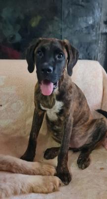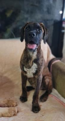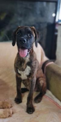 BOXER TIGRATA, SHIVA, 4 MESI ABBANDONATA IN APERTA CAMPAGNA