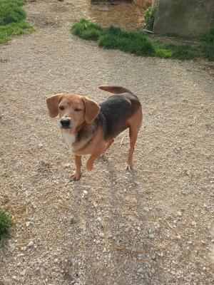 Simil Beagle.. ha circa 9/10 anni ..proviene dalla Sicilia.. adesso si trova nelle Marche.