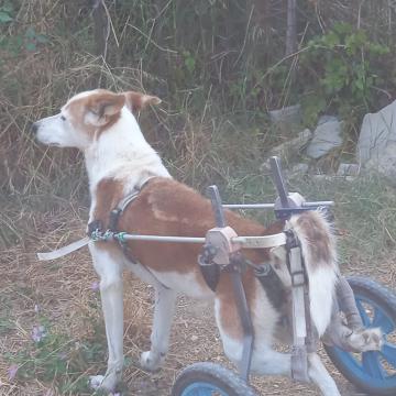 Sono una cagnolina disabile, mi sono adattata subito al mio carrellino.. peso 17 chili e ho 7 anni circa.. Non ho malattie infettive. Vado d’accordo con tutti, anche con i gatti.. Sono passati diversi anni, tanti appelli per me, ma nessuno si è mai interessato.. Per fare la pipì serve una mamma che mi aiuti premendo la mia vescica.. Per le feci riesco da sola..