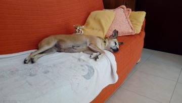 Questo post non avrei mai voluto farlo, purtroppo non c'è tregua per chi nasce sotto una cattiva stella. La piccola Mamy dorme tranquilla su quel bel divano, probabilmente ha già dimenticato i lunghi anni in box o il piccolo cortile fatiscente dove stava da sola, sembra proprio felice, eppure non è cosi, perché la piccola deve cercare di nuovo casa. È sempre un dolore dover cercare una nuova casa a una cagnolina che crede di aver trovato finalmente la sua serenità. La famiglia ha dei seri problemi e non la può più tenere. Mamy è una cagnolina di 8 anni, 13 kg. È molto affettuosa con le persone, non compatibile con altri animali, per cui si cerca adozione come figlia unica. La piccola si trova nelle Marche ma può viaggiare anche per altre città, purché sia accolta e amata come un membro della famiglia. La piccola è sana, già sterilizzata e vaccinata. Scrivere su WhatsApp al 3332670784