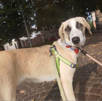 Inizialmente timida, ma socializza e apprende subito, va anche al guinzaglio J
