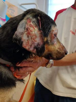 IGOR, CUCCIOLONE DALLA PELLE BRUCIATA DAL FUOCO DI UN INCENDIO