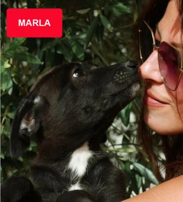 Vi presentiamo Marla e Milva, “sorelle gemelle” tutte nere con qualche goccia di bianco qua e là, taglia medio contenuta, simil segugio, zampette piccole, piccole e orecchie grandi.