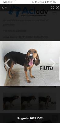 Fiuto è un bellissimo segugio nato nel 2017 che, per diversi anni, ha lavorato per il suo proprietario cacciatore, il solito personaggio a cui non importa nulla del proprio cane, trattato come un oggetto. Gli oggetti si usurano, si rompono, si buttano. Ed è proprio quello che è accaduto a Fiuto, lasciato probabilmente in un recinto in piena campagna senza nessuna protezione contro i parassiti, perchè non si spendono soldi inutili per per il proprio cane. Si è preso la leishmania, ma tanto che importanza ha, ormai era arrivato alla data di scadenza, l’età in cui i cani da caccia vengono abbandonati in strada e ci si fa il rimpiazzo giovane e scattante, la prossima vittima da fare ammalare e poi abbandonare.