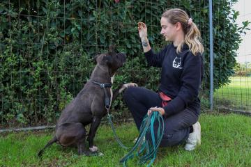 Tyson, Pitbull, 2 anni, bravo al guinzaglio, bravo in passeggiata. Bravo con l'essere umano, con gli altri cani non va d'accordo.