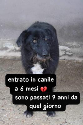 BAFFO 9 ANNI SIMIL SPINONE ENTRATO IN CANILE A 6 MESI Sono passati 9 anni, è ancora rinchiuso nello stesso box.