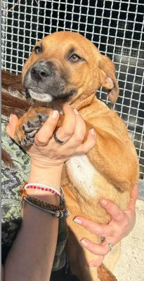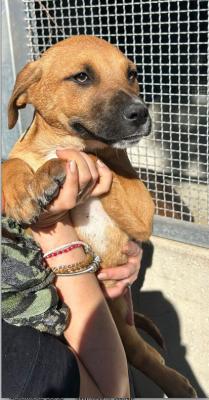 Tre fratellini, trovati con la loro mamma che vagavano di notte per strada in cerca di un riparo, 7 cuccioli, tutti adottati tranne RONNY, che già si dispera, rinchiuso dentro un box solo, non si da pace.