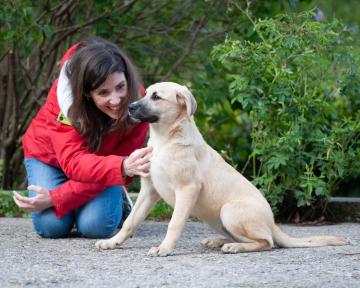 Futura taglia media, bella, dolcezza pura, sempre alla ricerca di contatto e coccole, ben socializzata con cani e gatti.