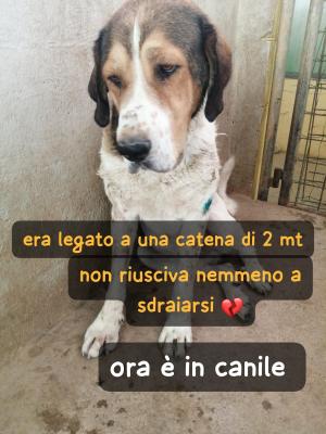 TED 5 ANNI CIRCA TAGLIA GRANDE ORA E’ IN CANILE Ha vissuto sempre legato a una catena lunga 2 mt, non riusciva nemmeno a sdraiarsi. E’ pieno di ferite e zoppica, pensiamo sia stato aggredito da altri animali ed essendo legato non aveva possibilità di fuggire. Da poco è stato portato in canile, appena ha avuto la possibilità si è sdraiato, finalmente poteva riposare comodo. E’ il cane più buono che io abbia mai visto, vi assicuro la sua dolcezza è disarmante, si farebbe accarezzare per ore. Non deve finire così la sua vita. Non deve rimanere lì in canile… Compatibile con altri cani. Adottabile centro nord Italia. Elisabetta 347-5618559
