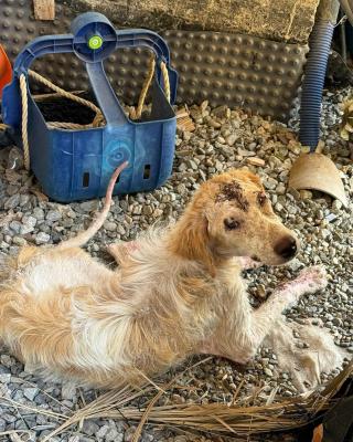 Questo cagnolino taglia medio piccola si è rifugiato così malridotto, in un giardino segnalato ai volontari è stato portato in clinica, a breve uscirà e se non trova adozione o stallo sarà portato in canile