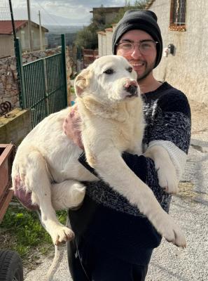 Carmelo è frutto della ignoranza cronica di certi individui.. un anima innocente.. Adesso è al sicuro.. E’ stupendo, meraviglioso .. Da grande sarà una taglia media/grande.. sui 25/28 chili..
