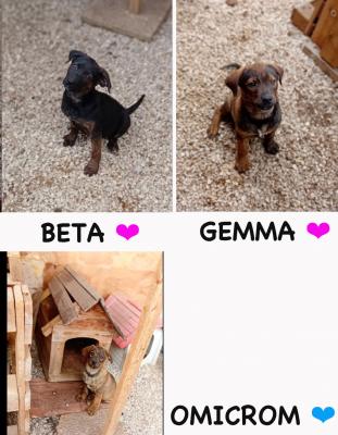 BETA, GEMMA (femminucce) e OMICROM (unico maschietto), quasi 3 mesi (25/10/24), futura taglia media.