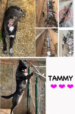 TAMMY, è stata recuperata insieme ai suoi 3 fratellini (solo una di loro è stata adottata) dentro un canalone profondo 6 metri. La loro storia è assurda, perché qualcuno li ha buttati diversi mesi prima, e qualcuno li nutriva buttando loro del cibo tra rifiuti e acqua stagnante. Nemmeno le autorità hanno alzato il c…. lasciandoli ad un destino terribile, sino a quando i volontari di zona li hanno scoperti e in collaborazione con più Associazioni, sono stati portati in salvezza e sicurezza. Il recupero non è stato semplice, servivano scale per calarsi a una profondità di sei metri.