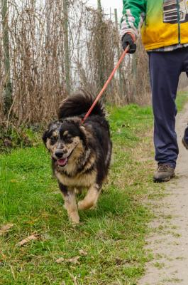 Molto dolce, bravo in passeggiata, sembra compatibile con gli altri cani ma è da valutare.