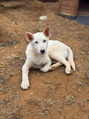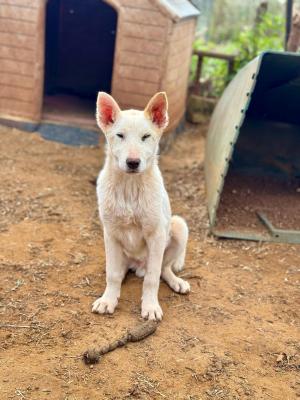 JINDO COREANO INCR., BRANCO E FILO, 5 MESI (15/11/24), TROVATI DENUTRITI, IN CONDIZIONI PESSIME, TRA L’INDIFFERENZA DELLA GENTE